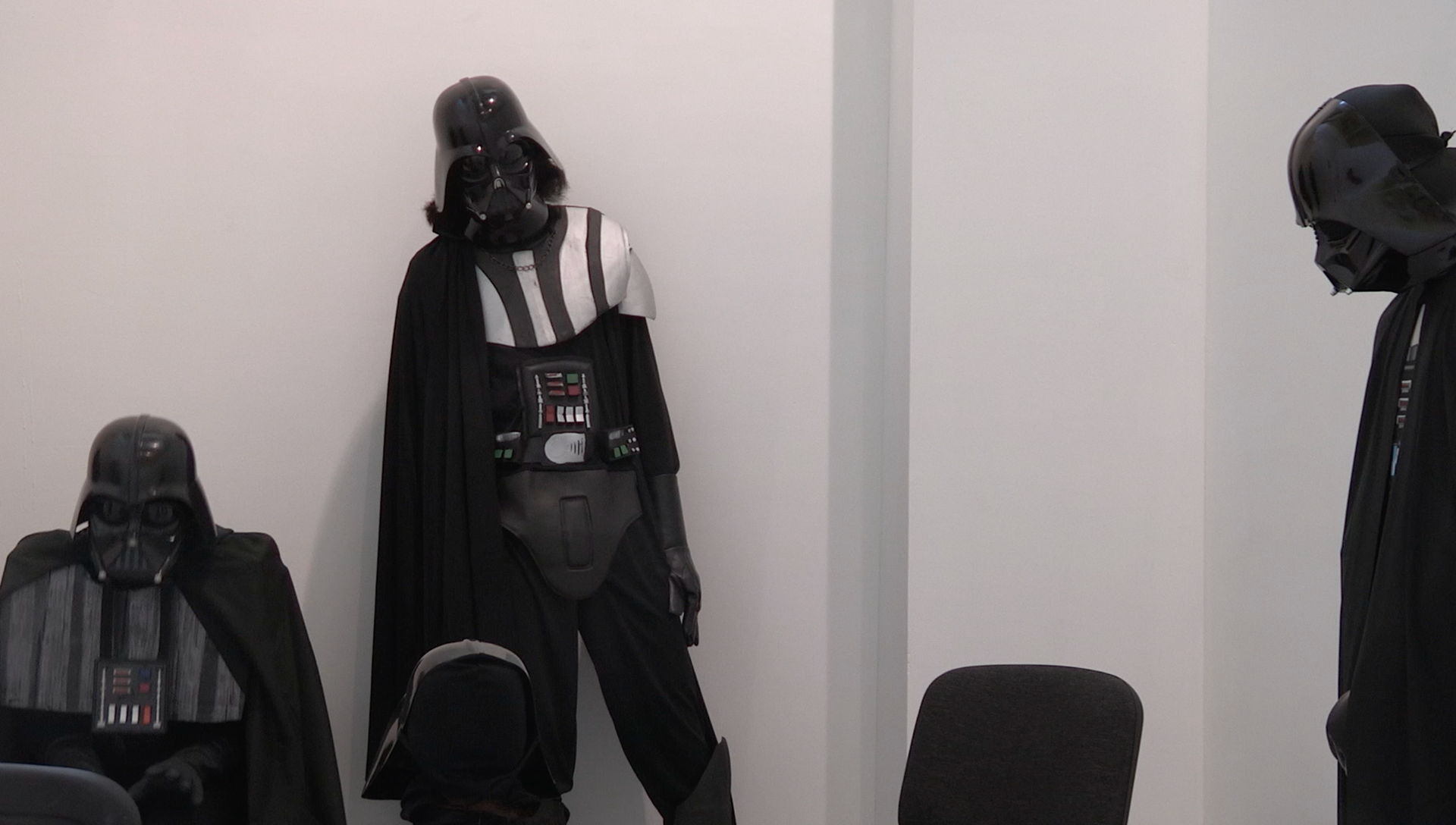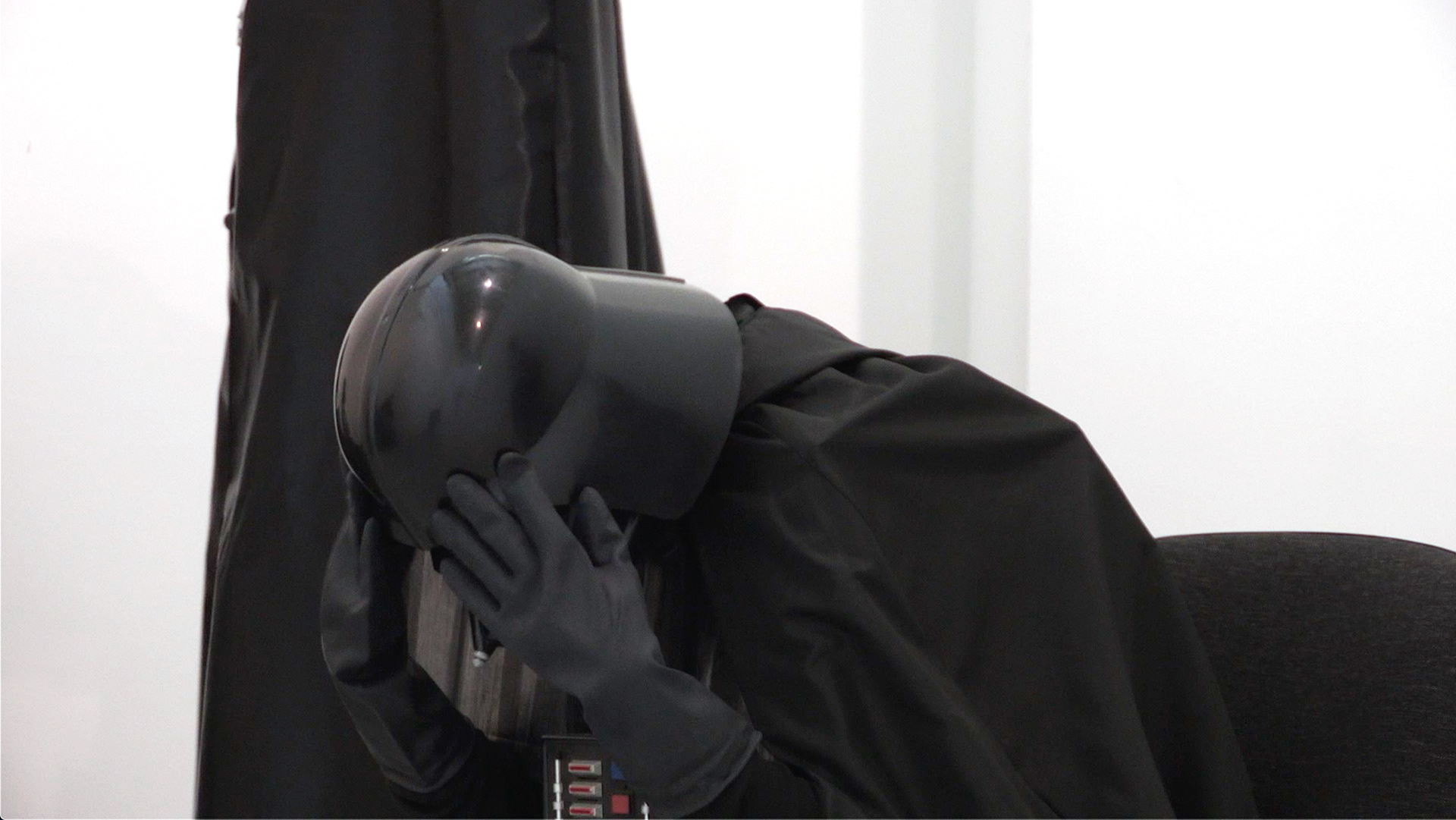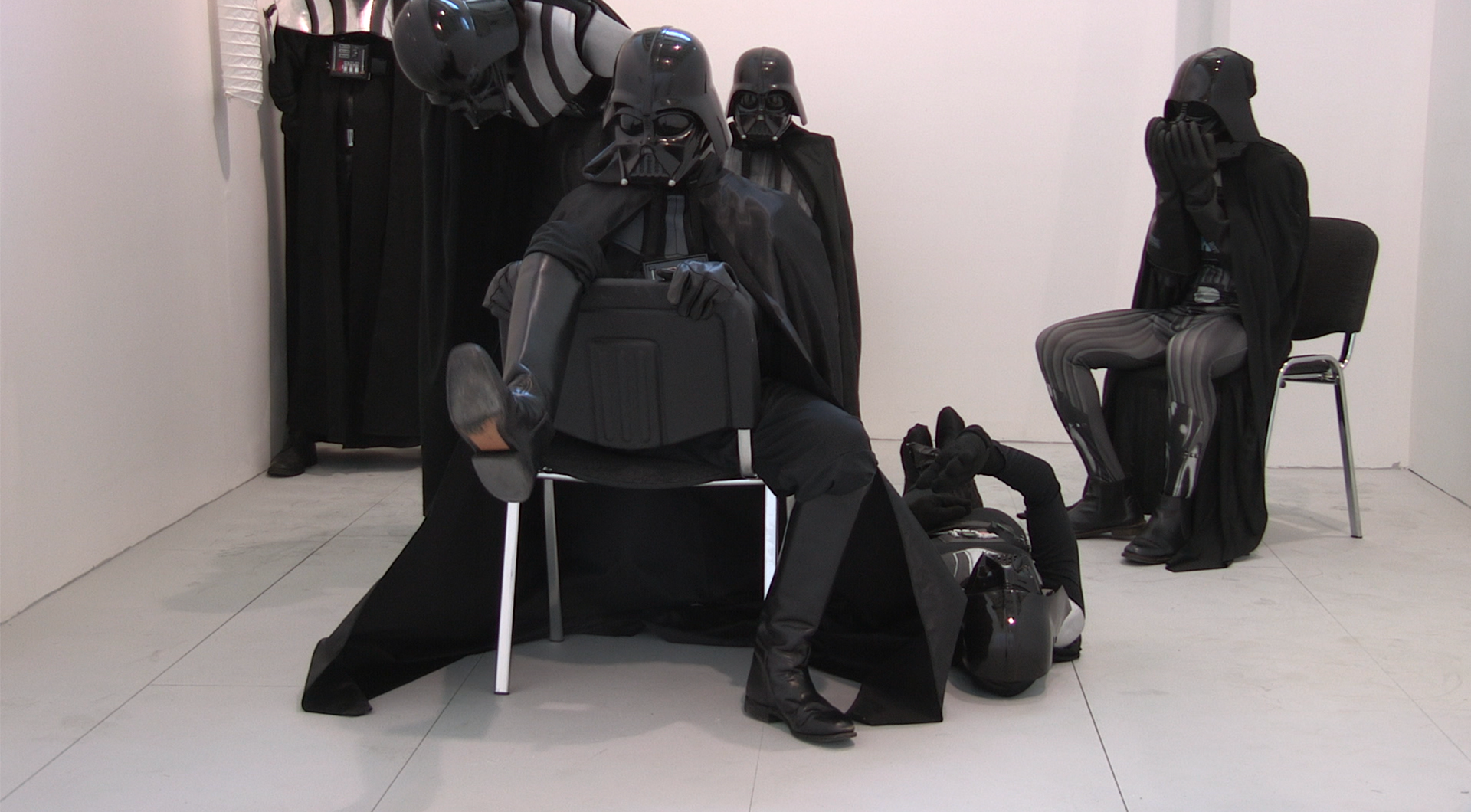 All Together Now was a performance in which six darth vaders, dressed in slightly different costumes, silently occupied an empty white room during the Deptford X exhibition at Goldsmiths University.