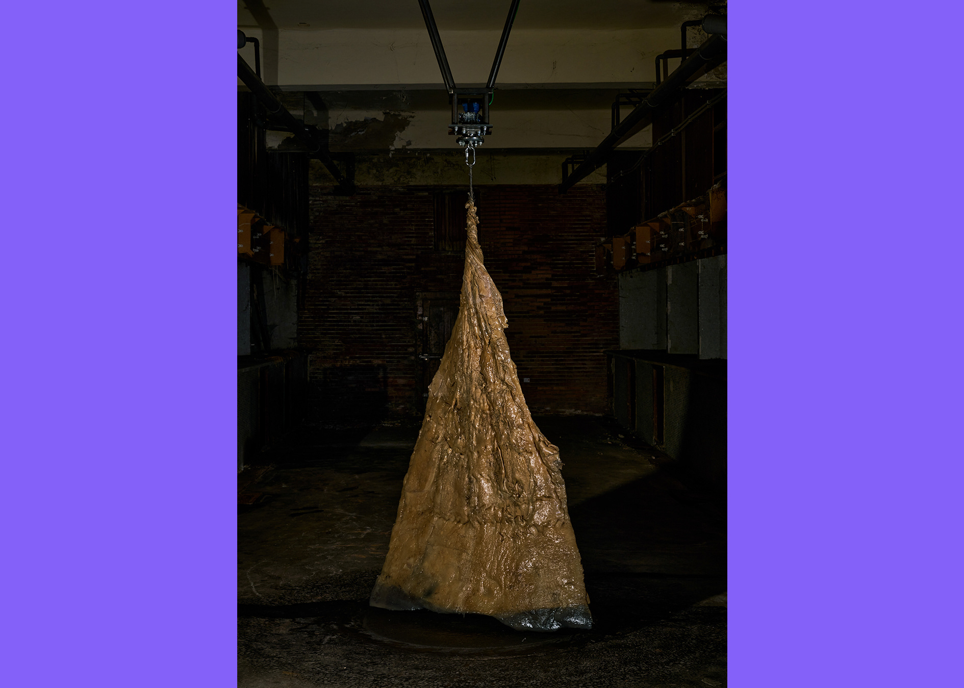 Figures of Amplification was an installation that had the corner of a SCOBY slowly moving up by the means of a mechanized pulley system. The action was on loop: after the SCOBY reached the top point, it would drop down.