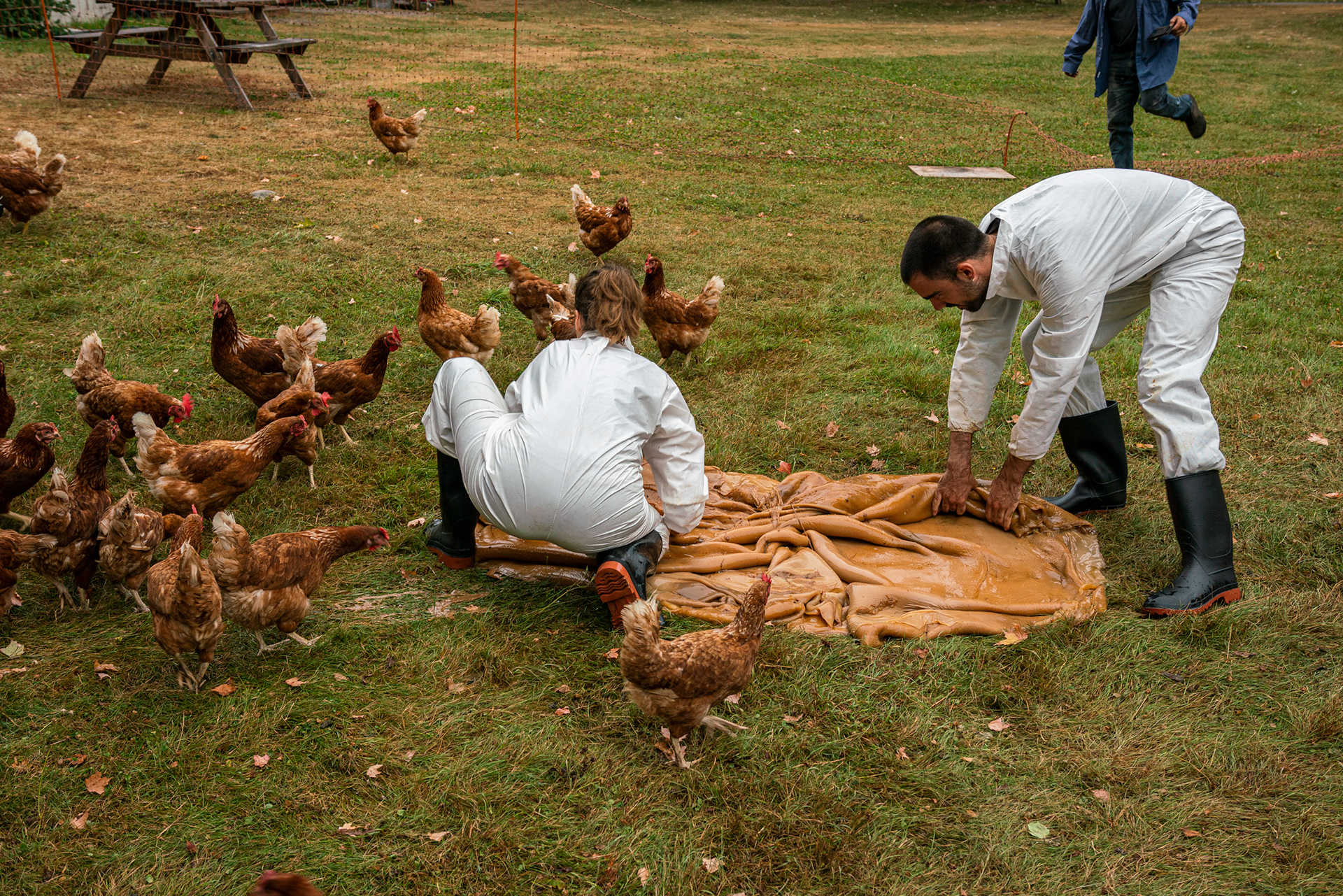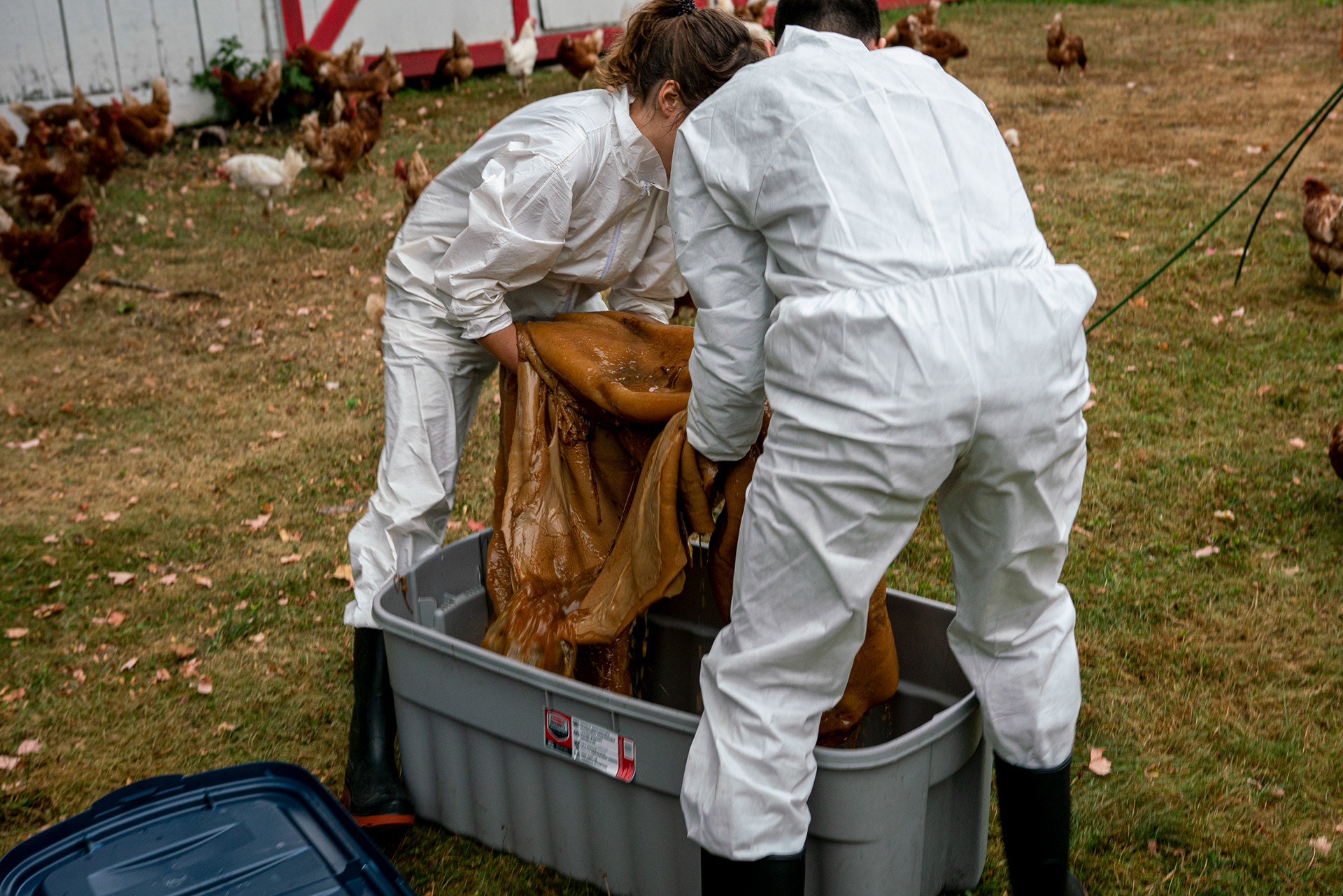 4. Feeding the SCOBY to a flock of mature chickens.
