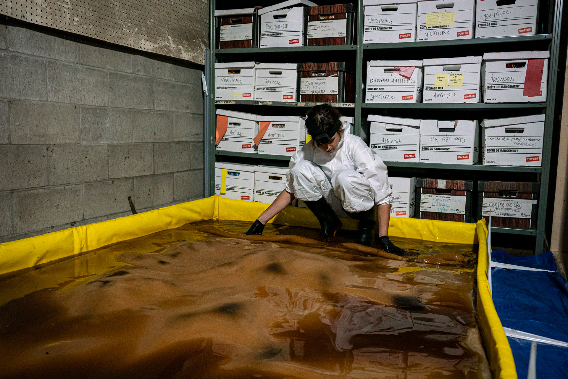 MR. BIG was a durational exhibition and performance made in collaboration with VERTICALE artist-run center in Laval, Quebec during the summer of 2021. The exhibition involved growing a large-scale SCOBY (Symbiotic Culture Of Bacterial Yeast) over the course of a month and a half in the center's storage unit. This growth was live-streamed to VERTICALE's website, where there was a chat with the SCOBY.