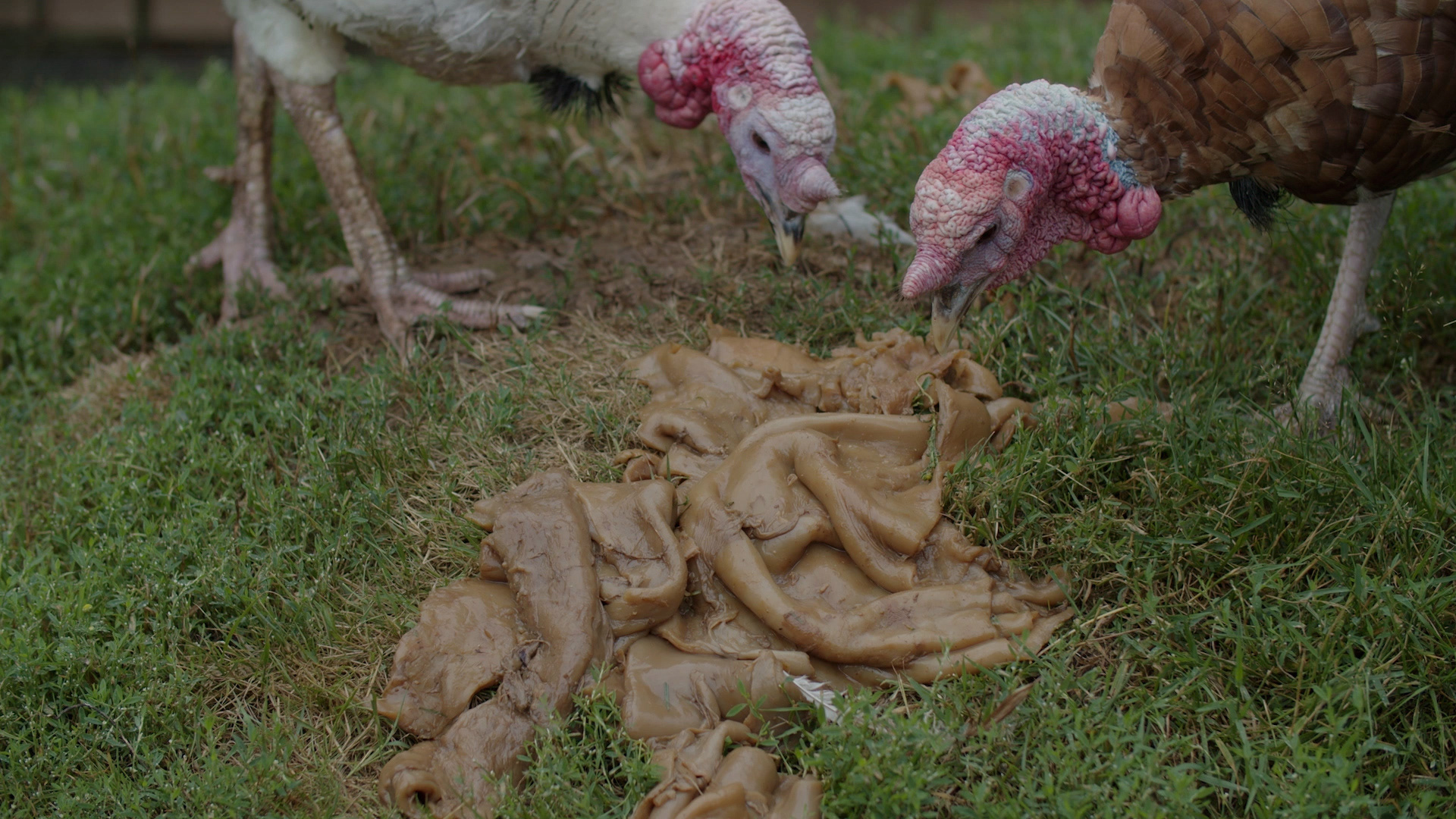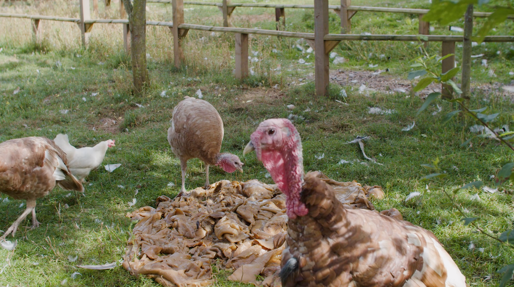 Orbital Shakes is a nine minute video that documents turkeys eating SCOBY (Symbiotic Culture Of Bacterial Yeast), alongside interactions of other birds. Filmed at the Bird Gardens of Scotland, the background noise captures the adjacent highway.